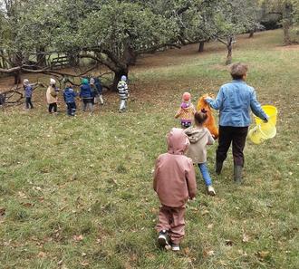Seit diesem Jahr verbindet die Diakonie-Kita St. Matthäus in Bischberg eine Kooperation mit dem Schaf- und Ziegenhof Lips in Wildensorg. Und so ging es jetzt zum vierten Mal für die Kita-Kinder für einen Tag auf eine - diesmal herbstliche - Abenteuertour. Bereits die Anreise mit dem Stadtbus war für die Kinder spannend. Auf dem Hof erwartete sie dann das dortige Team mit einem gemütlichen Frühstück in der Heuscheune. Gestärkt ging es zur Apfelwiese. Tatkräftig packten die St. Matthäus-Kinder mit an und sammelten Äpfel für die Tiere als Futter und auch zum Apfelsaftpressen. Einen Sack durften sie sogar mit in die Kita nach Bischberg nehmen. Verköstigt wurde das gesammelte Obst natürlich auch gleich vor Ort. Außerdem auf dem Programm: „Ziegenzeit“. In einer großen Kiste wurden mit Hilfe von Spaten getrocknetes Brot und Gemüsestücke zerkleinert. Die Kinder vermischten anschließend alles noch mit Körnern und verteilten das Futter an die Ziegen. Das darauffolgende Ziegenwohlfühlprogramm bestand dann noch aus Streicheln und Bürsten der Tiere.