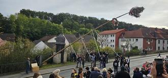 Der Samstag stand im Zeichen des Kerwasbaumes, der wie in den letzten Jahren aus dem eigenen Rechtlerwald stammte. Unter musikalischer Begleitung durch die Blaskapelle wurde der von den Kerwasburschen gefällte und von den Kerwasmadla geschmückte Baum durch die von Zuschauern gesäumte Hauptstrasse gezogen. Beim Aufstellen zeigte sich die jahrelange Erfahrung der Kerwasburschen, ohne Hektik wurde der Baum in die Senkrechte gebracht und als Finale wurden die weiß-roten Rauchkerzen an der Spitze entfacht. Das anschließende Treiben inmitten der Schausteller auf dem Festplatz zeigte viele Gäste aus nah und fern unterhaltend beisammen stehen. Am Abend