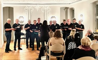 Einen gelungenen musikalisch-kulinarischen Abend erlebten die Besucher*innen des Konzertes „Wein und Gesang“ am Samstag, den 29.10.2022 im Unteren Schloss. Neben dem Patenverein, dem Männerchor des MGV Oberhaid, sangen auch drei Chöre des GV Frohsinn.