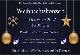 | 26. November | Bischberger Weihnachtsmarkt: Juniorband, Concertband und Hauptorchester |