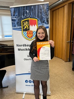 Trompeterin Celine Morgenroth hat beim Bezirksentscheid des Solo-/Duo-Wettbewerbs „Concertino“ teilgenommen und dabei mit 91 von 100 möglichen Punkten einen „ausgezeichneten Erfolg“ erzielt. Beim Bezirksentscheid in Kronach konnte sie sich als Bezirkssiegerin außerdem die Weiterleitung zum Bundes-/Verbandsentscheid in Sulzbach-Rosenberg in wenigen Wochen sichern.