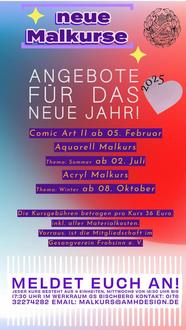 Wir starten wieder mit neuen Malkursen. Ihr könnt Euch ab sofort anmelden. Wir freuen uns auf Euch.