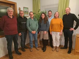 Die Kirchenverwaltungsräte, die ihre Amtszeit von 2025 bis 2030 antreten, sind auf dem Bild (von links nach rechts) zu sehen: Ludwig Klug (Kirchenpfleger und Vertreter in der Gesamtkirchenverwaltung Main Aurach), Uwe Vollmuth, Martin Knoblach (auch Vertreter im Pfarrgemeinderat), Renate Heinz, Martin Sterzinger und Gabriele Götz-Dittebrand. Ebenfalls auf dem Bild zu sehen ist Pfarrer Sebastian Schiller.