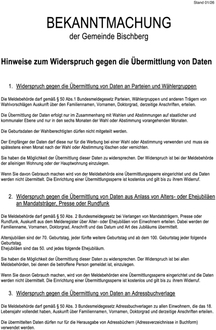 | 1. | Widerspruch gegen die Übermittlung von Daten an Parteien und Wählergruppen |