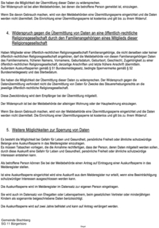 | 4. | Widerspruch gegen die Übermittlung von Daten an eine öffentlich-rechtliche Religionsgesellschaft durch den Familienangehörigen eines Mitglieds dieser Religionsgesellschaft |