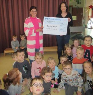 Am Donnerstag, 8.12. hatte unser Kindergarten Besuch von Frau Schilling, die als Vertreterin des „Bunten Kreis“ , Bamberg die Kollekte der St. Martinsfeier entgegen nahm. Es kam ein stolzer Betrag zusammen, den der Kindergarten noch aufrundete.