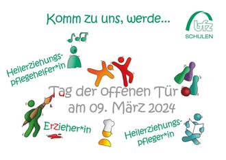 Die Bamberger bfz Schulen laden am Samstag, den 9. März 2024 zum Tag der offenen Tür ein. Von 10 bis 13 Uhr gibt es umfassende Informationen rund um die Ausbildungen zum*zur Erzieher*in, zum*zur Heilerziehungspfleger*in und zum*zur Heilerziehungspflegehelfer*in.