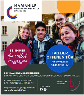 Am 09. März 2024 öffnet die Berufsfachschule Mariahilf von 10.00 - 12.30 Uhr ihre Pforten für einen Tag der offenen Tür.