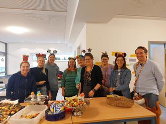 Frau Albert und ihr Team vom gesunden Pausenfrühstück zauberten dieses Mal einen Frühstückstisch mit Überraschungen rund um den Karneval aus dem Hut. Ganz in Verkleidung stimmten sie Schülerinnen und Schüler sowie die gesamte Lehrerschaft auf den kommenden Fasching ein und verbreiteten mit Luftschlangen und Konfetti eine lustige Stimmung. So schmeckt das gesunde Frühstück noch besser!