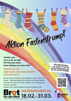 In diesem Jahr laden wir alle Familien und Gemeindeglieder ein, sich solch einen Fastenstrumpf zuzulegen und in den 7 Wochen Fastenzeit diesen mit kleinsten oder kleinen Geldbeträgen nach und nach zu füllen. Ein Fastenstrumpfkalender gibt die Zählaufgaben vor und informiert über die Lebensbedingungen in anderen Ländern.