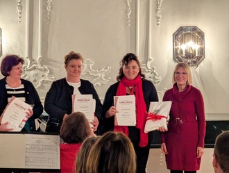 Am 7.12.2024 fand unsere traditionelle Weihnachtsfeier mit Ehrungen im Unteren Schloss statt. Im wunderschön weihnachtlich geschmückten Saal ließen die Erwachsenenchöre Weihnachtslieder erklingen. Dazwischen fanden die Ehrungen statt. Wir konnten 13 Mitglieder von 25 bis 70 Jahre Vereinsmitgliedschaft ehren. Fünf SängerInnen konnten wir für 10 Jahre, eine Sängerin für 25 Jahre und sogar 2 Sängerinnen für 40 Jahre aktives Singen ehren. Die 40-jährigen wurden von der Vorstandschaft der Sängergruppe Aurach-Main geehrt - vertreten durch Gabi Kandzora. Auch die Probenbesten wurden vom Verein geehrt. Im Anschluss gab es wie immer ein großes und leckerer Buffet. Die Weihnachtsfeier klang sehr gemütlich mit tollen Begegnungen und interessanten Gesprächen aus.