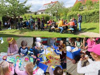 Im Anschluss daran verteilten sich die Kinder zum Spielen über das ganze Gelände. Im sogenannten Spatzengarten erwarteten sie Basteleien und Geschicklichkeitsspiele. Frischer Kaffee und selbstgebackene Kuchen gab es im Gebäude, Gebratenes vom Grill und kalte Getränke verkauften die Helfer unter einem Pavillon im Garten. Die Kinder beschäftigten sich im Sand, schaukelten oder rutschten und hatten auch an diesem Sonntagnachmittag ihre Freude in „ihrem“ Kindergarten.