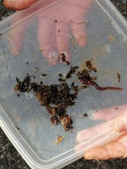 Mit viel Spaß gruben die Kinder den Kompost um, um Regenwürmer zu finden, sie genau anzuschauen und zu beobachten. Zum Abschluss wurde gemeinsam ein Regenwurmglas befüllt und mit in den Kindergarten genommen. So können die Kinder auch dort noch die Regenwürmer beobachten, wie sie Gänge in die Erde graben.