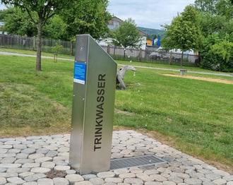 Ab sofort kann sich jeder am Martin-Luther-/Wasserspielplatz an der Rhönstraße kostenfrei per Knopfdruck am neuen Trinkwasserspender erfrischen.