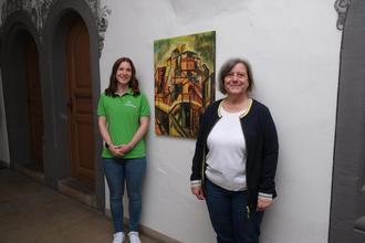 Acrylmalerei im Eingang des historischen Rentamtes (v.l. Laura Rösch und Eva Repp-Poppe)