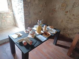 Buffettisch „Kunst-Genuss“ mit den Arbeiten von Nico Jendrusch, Johanna Barth, Johanna Helle, Sonja Wiesner, Horst Rüggeberg, Claudia Fink, Elias Frisch, Kathrin Hubl, Peter Picciani, Maria Boldt, Anne Heß