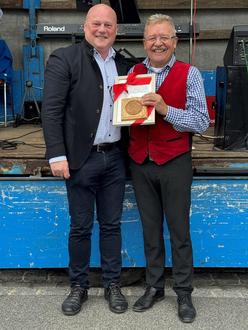 Bernhard Eisenmann wurde von Bürgermeister Georg Seiffert mit der Bürgermedaille ausgezeichnet