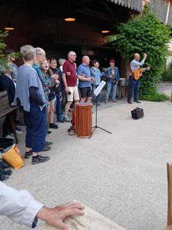 Als erstes stand Arles - eine schmucke Kleinstadt unweit von Manduel und Namensgeberin der o.g. traditionellen Tracht - auf dem Programm. Die deutsche Reiseführerin Gabriele, ihres Zeichens bereits seit 45 Jahren in Frankreich verwurzelt, führte die deutsch-französische Gruppe u.a. in das antike Theater, in die Arena und in ein regionales Museum und wusste viel Wissenswertes und Interessantes über Arles und die Region zu berichten. Der Tagesabschluss ging im Weingut Campuget im wahrsten Sinne des Wortes über die Bühne, überraschten doch die Tambourinaires die deutschen Gäste mit einer musikalischen Einlage, zum Teil sogar mit bekannten deutschen Melodien. Da ließen sich auch die Bischofsheimer nicht lumpen und stimmten spontan - unterstützt von Matthias Poppe an der Gitarre - das Kreuzberglied und das Rhönlied (“Ich weiß basaltene Bergeshöh’n”) an. Bei leckeren hausgemachten Salaten, selbst gegrillten Fleisch- und Wurstspezialitäten und lokalem Wein ein besonders gelungener Abend.