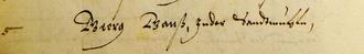 Hier ein Beispiel: Erst nach mehrmaligen hinsehen wurde klar, das ist der Namensgeber der Ganß-Mühle (eigentlich Sandmühle) im Grund zwischen Bischofsheim und Frankenheim (Brendabwärts kommt die Flurgemarkung Sandwiese). Georg Ganß, anno 1587.