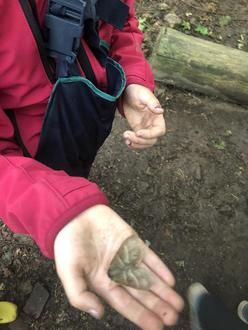 Immer wieder gibt es „Wilde Tiere“ zu bestaunen wie z. B. die Waldmaus, Erdkröte, Laubfrosch oder ein aus dem Nest gefallener Jungvogel – wobei die meisten Tiere doch schnell das Weite suchen angesichts der wilden Horde Eindringlinge. Für kleine Fundtiere wie Käfer, Asseln und Würmer stehen uns Lupenbecher zur Verfügung. Auch einzelne Kletterbäume erfreuen sich großer Beliebtheit bei den Kindern.