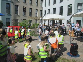 Am diesjährigen Aktionstag Musik in Bayern beteiligte sich auch unsere Einrichtung wieder mit einem Beitrag. Das diesjährige Sommerfestprogramm sollte in leicht verkürzter Version erneut im Garten des Seniorenheims Hammermühle zur Aufführung kommen. Die Kinder hatten viel zum Thema: „Eine Reise mit dem roten Hochrhönbus “ einstudiert und entsprechende Kostüme und Requisiten vorbereitet. Die Senioren konnten die Rhön in den umgedichteten Liedern mit verschiedenen heimatbezogenen Stationen wie z. B. den Sehenswürdigkeiten Bischofsheims, Wanderern, Gleitschirmfliegern, Rhönräubern und Rhönschafen usw. wiederfinden, und sich mit altbekannten Melodien identifizieren. Das Wetter war uns auch wohlgesonnen, und so sorgte die Darbietung bei den Bewohnern für allerhand Kurzweil.
