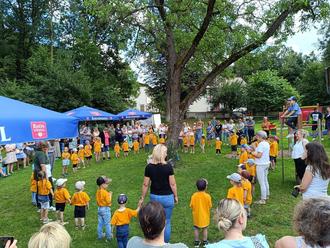 Alle Kinder, Eltern und Großeltern waren zum Familienfest in den Kindergarten St. Katharina eingeladen. An einem schönen Sommernachmittag wurde im Garten des Kindergartens gefeiert. Die Kindergartenkinder sangen bei ihrer Aufführung selbstgedichtete Lieder, Bewegungslieder und einen kleinen Tanz zeigten die „Kleinsten“. Dann konnten sich die Kinder den ganzen Nachmittag an den verschiedensten Spielstationen beschäftigen. Bei selbstgebackenen Kuchen, Waffeln und einer Bratwurst kam jeder auf einen Gaumenschmaus. Der Elternbeirat lud zu dem Fest ein und organisierte es auch.