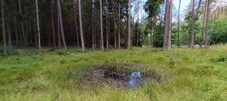 Im Bereich des Schönauer Waldes existieren unzählige sog. Bombentrichter, die für Wasserrückhalt sorgen. In ihren Mulden kann das Wasser länger stehen bleiben. Dadurch entstehen Mikrohabitate, welche wiederum die Biodiversität unterstützen. Die Wasserspeicherung trägt auch zur Kühlung des Waldes bei.