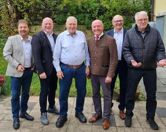 v.l.n.r.: Patric Müller, MdL und Bürgermeister Gau-Bischofsheim, Bürgermeister Georg Seiffert, Harald Weidner, Landrat Thomas Habermann, Bürgermeister Thomas Stadelmann aus Zeil, ehem. Bürgermeister Bischofsheim/Mainz Reinhard Bersch