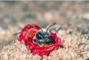 Eine Spezialistin unter den Wildbienen: Die Mohnbiene kleidet ihr Nest mit Blütenblättern des Mohns aus.