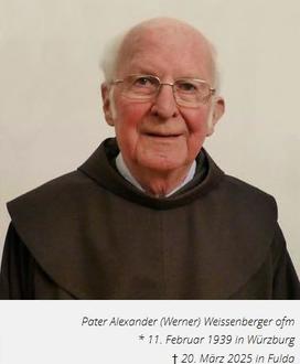 Der gütige Gott, der Herr über Leben und Tod, rief am 20. März 2025 den Franziskaner Pater Alexander Weissenberger mit 86 Jahren für immer zu sich.