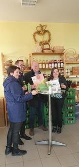Am Dienstag, den 4. April 2023, präsentierten die Bürgermeisterinnen und Bürgermeister bei der in Sandberg ansässigen Fruchtsaftkelterei Söder die Botschafterprodukte für die Kampagne. Darunter befinden sich Etiketten, Flaschenanhänger, Bastelbögen, mit bekannten Gebäuden aus der Kreuzbergallianz, und das eigens konzipierte ORTSAFT-Spiel "KERNGESUND!“. Das Brettspiel vermittelt auf spielerische Weise die Problematik der Landflucht sowie des demographischen Wandels und lässt den Spielenden erfahren, wie viel Engagement und Kreativität es braucht, um seinen Ort kerngesund zu halten.