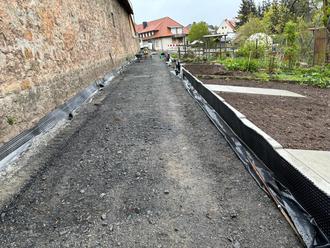 Der neue barrierefreie Fußweg vom Altenheim zur Stadtmauer und auch der Weg entlang der Gärten nimmt bereits Formen an. Die Sanierung der Stadtmauer läuft derzeit parallel. Bis Herbst dieses Jahres soll die Maßnahme weitestgehend abgeschlossen sein. Die städtischen Gärten werden momentan in ca. 25 Parzellen aufgeteilt und haben eine Größe zwischen 55 und 130 qm. Sie werden mit einem Wasseranschluss und einer Unterstellmöglichkeit für Gärtengeräte ausgestattet. Die Pachtkonditionen sind noch nicht im Detail festgelegt. In jedem Fall wird eine kleingärtnerische Nutzung in Anlehnung an die Regelungen im Bundeskleingartengesetz festgeschrieben. Bei Pachtinteresse können Sie sich jedoch bereits jetzt mit Angabe der gewünschten Gartengröße an Herrn Hergenhan, Tel. 09772/9101-12, Email: steffen.hergenhan@bischofsheim-rhoen.de wenden.