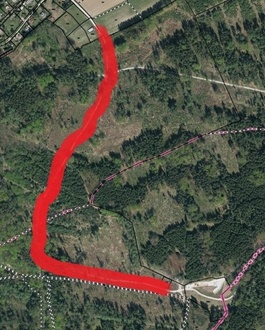 in einzelnen Abschnitten in den Waldweg (siehe Plan) verlegt.