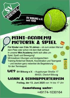 Wer Lust hat, kommt einfach am Samstag den 14.06.2025 ab 11 Uhr auf die Tennisanlage vom SV Biburg e.V. an der Augsburger Str. 17 in 86420 Biburg vorbei.