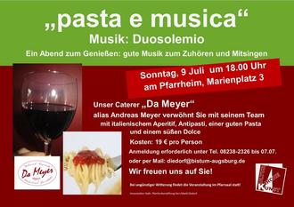 Herzlich willkommen zu unserem kulinarischen und musikalischen Sommerabend „pasta e musica“ im Rahmen von „Kunst-Kultur-Kirche“