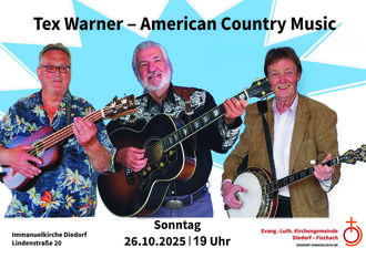| 19.00 Uhr | Konzert Tex Warner, Immanuelkirche Diedorf |