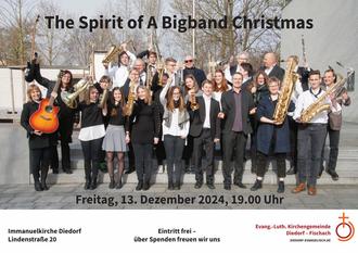 Die „Spirit of A Bigband“ hat schon etliche Konzerte vor vollem Haus in Diedorf gegeben. Auch dieses Jahr kommt die Bigband mit „A Big-Band Christmas“ in die Immanuelkirche. Neben weihnachtlichen Kostbarkeiten aus Jazz, Swing, Gospel und Latein wird sich die Band auch von ihrer besten symphonischen Seite präsentieren.