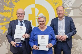 Bei einer Feierstunde im Landratsamt Augsburg konnte Landrat Martin Sailer im Namen von Innenminister Joachim Hermann erst kürzlich 1. Bürgermeister Peter Högg die kommunale Verdienstmedaille in Bronze und 3. Bürgermeisterin Maria Prues die Kommunale Dankurkunde übergeben.