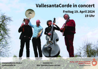 | 19.00 Uhr | Konzert Vallesantacorde, Immanuelkirche Diedorf |