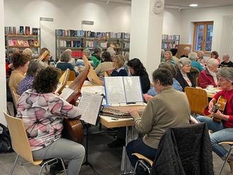 Martina Biehler begrüßte alle Anwesenden. Für musikalische Gestaltung sorgte die Tischharfengruppe „Brucker Zupfer“ unter der Leitung von Frau Regina Kreuzer. Die Musiker schufen mit Harfenklängen und vorweihnachtlichen Liedern eine stimmungsvolle und festliche Atmosphäre.