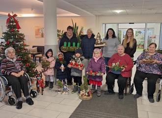 Die verbliebenen Bastelstücke wurden auch dieses Jahr dem Seniorenheim gespendet, damit auch hier ein bisschen mehr Weihnachten und Freude ins Haus kommt. Die Dankbarkeit der Senioren war bei der Übergabe deutlich zu sehen und zu spüren und auch die Heimleiterin Christine Blab bedankte sich im Namen aller Bewohner für die weihnachtlichen Gestecke.