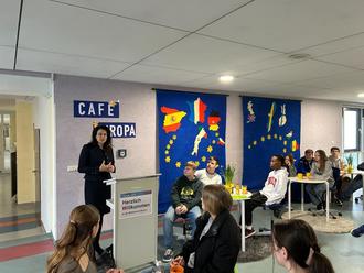 Die Abgeordnete schilderte im Rahmen eines gemeinsamen „Café-Besuchs an der Schule“ ausführlich ihren beruflichen und politischen Werdegang. Sie erläuterte die Arbeit in den Ausschüssen des Bundestages bspw. des Verkehrsausschusses, in dem sie tätig ist. Dazu war auch die Brucker Bürgermeisterin, Heike Faltermeier, anwesend um die Infos aus Bundesebene mit konkreten Auswirkungen in der Lokalpolitik zu verdeutlichen. Als Beispiele dienten die Elektrifizierung der Bahnstrecke Regensburg-Hof oder der Ausbau der B85. Dabei betonten beide Politikerinnen die Wichtigkeit, sich über gesellschaftlich-politische Themen unserer Zeit zu informieren und setzten sich in einem leidenschaftlichen Plädoyer für den Wert der Demokratie und die Möglichkeiten der Mitbestimmung ein. Gleichzeitig warnte die Abgeordnete vor den Gefahren die sie vor allem in populistischer Meinungsmache, gezielter Falschinformation (Fake-News) und Hate-Speech im Netz verortete.