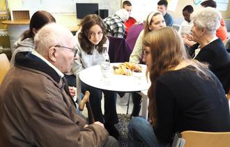 Dieses Zusammentreffen fand in der vergangenen Woche in Form eines Zeitzeugengesprächs an der Mittelschule im Klassenzimmer der 8M statt. Nach den Grußworten der Bürgermeisterin Heike Faltermeier und den einführenden Worten von Dr. Wittmann trafen sich Schüler- und Zeitzeugengruppen in kleiner Runde zu einem Austausch. So entstanden aus den vorbereiteten Fragen der Schüler intensive Gespräche über die Zeit um 1945. Die Schüler waren beeindruckt, wie lebhaft sich die Seniorinnen und Senioren an diese Zeit erinnern konnten und wie tief sich diese Schrecken in deren Gedächtnis eingegraben hatten.