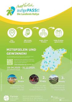 Natürlich ist auch eine Teilnahme ohne Smartphone an der Rallye möglich. Dafür einfach die Nummer des jeweiligen Pins auf der Teilnehmer-Karte notieren, persönliche Daten eintragen und bis spätestens zum 31. Dezember 2025 an die auf der Karte angegebene Adresse einschicken. Abgeholt werden kann die Karte ab sofort im Landratsamt, in jeder Kommune und bei den Tourist-Infos des Landkreises.