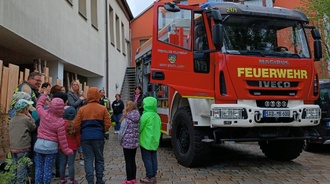 Vorgelesen wurde von den Leiterinnen der Kinderfeuerwehr. Jasmin Hecht las Geschichten von „Fritz dem Feuerwehrauto“ vor und Tanja Weinfurtner erklärte, mit Hilfe des Sachbuches „Retter im Einsatz“, die Aufgaben der Feuerwehr.