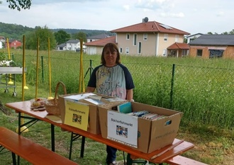 Am 12. Familiennachmittag des Marktes Bruck i.d.OPf. im Garten des Seniorenheimes St. Elisabeth beteiligte sich das Büchereiteam mit der Spielstation „Eierlaufen“ sowie einem Bücherflohmarkt.