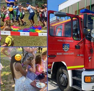 Für die Kinder war neben Haarsträhnen flechten, ein besonderes Highlight geboten: Die Freiwillige Feuerwehr Bruck kam mit ihrem großen Feuerwehrauto. Die Kinder konnten sich das Auto ganz genau ansehen und Probe sitzen.