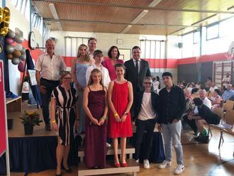 Diese „Trumpfübergabe“ setzte sich dann fort, als Rektor Markus Binder zusammen mit den Bürgermeistern und den Abschlusslehrkräften die Zeugnisse übergab.