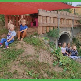 In Zusammenarbeit mit dem Elternbeirat und mit Unterstützung einiger Eltern, entstand auf der Spielwiese der Kinderkrippe Wirbelwind ein Tunnel, der die Kinder zum Spielen und zum Verstecken einlädt.