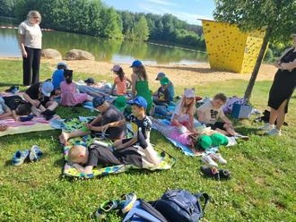 An zwei Tagen im Juli war in der Brucker Sandoase schon vormittags viel Trubel, denn die Vorschulkinder der beiden Brucker Kindergärten und die Schulkinder der Brucker 1/2-Klassen trafen sich dort zu gemeinsamen Ausflügen. Ziel war das gegenseitige Kennenlernen, denn schließlich sollen die Kinder ab Herbst gemeinsam die Schulbank drücken.
